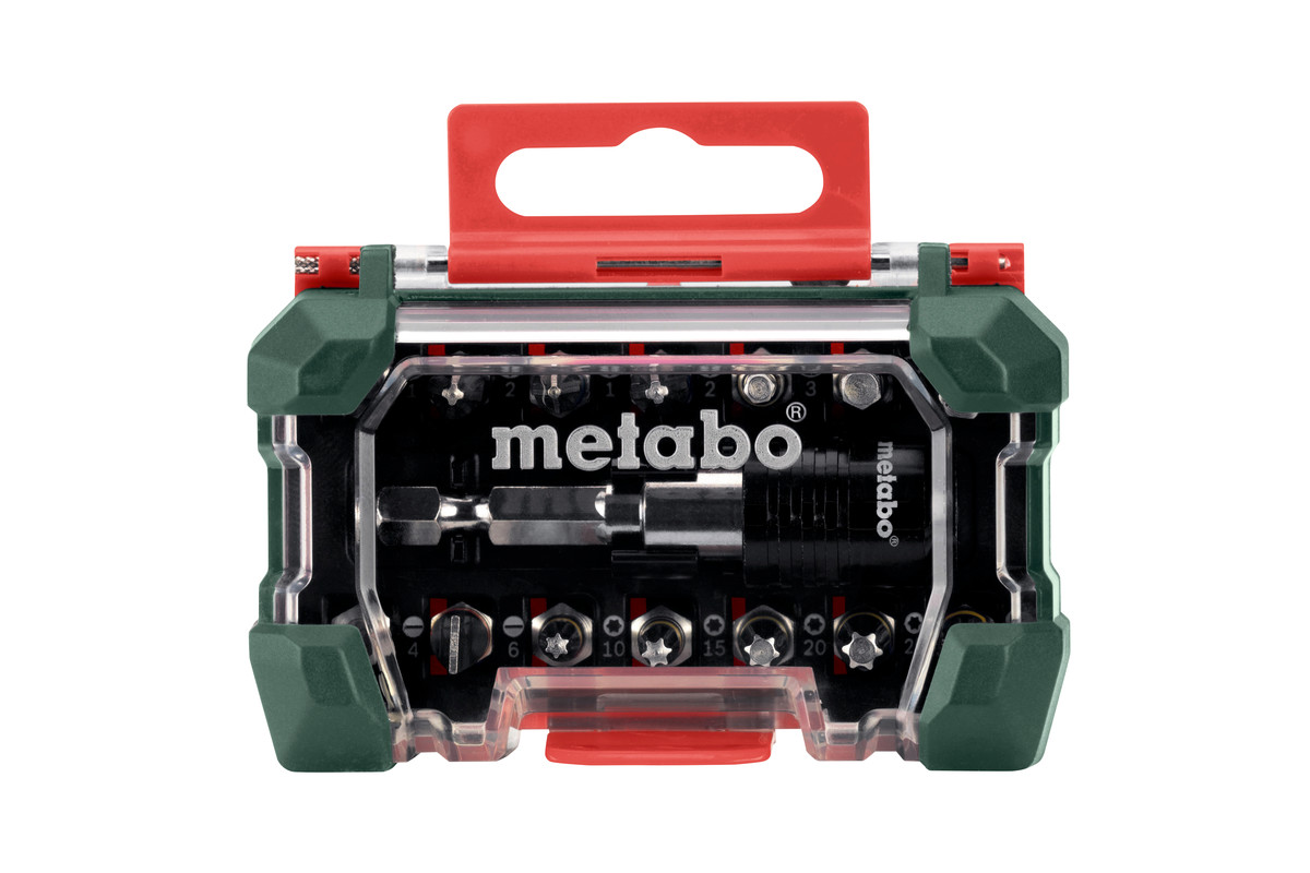 • Bits made of chrome vanadium steel (S2 quality); bits with colour coding: for fast and simple detection of the suitable bit; magnetic quick change adapter; high-quality, robust box in special Metabo design, with extendable Euro hole hanger