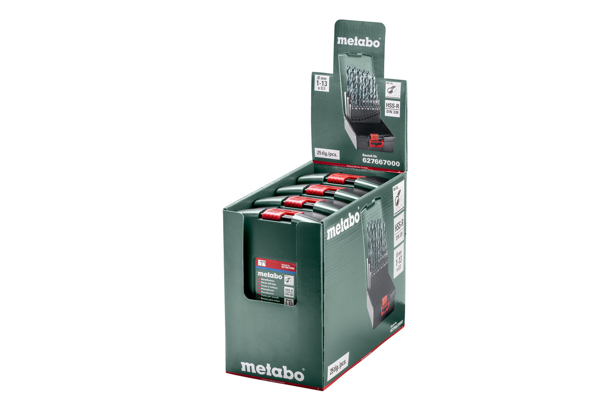 • HSS-R Metal drill bits, roll-milled version, cylindrical, type N, 118° cone-shaped, shell polished surface, 25 pieces, in plastic carry case