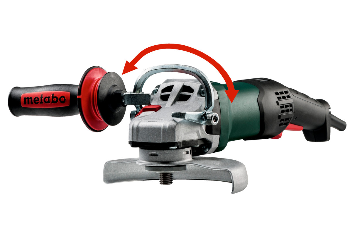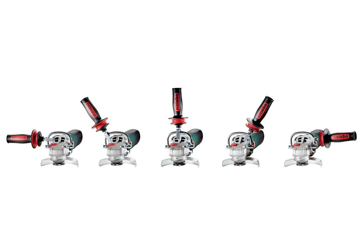 - The 180° handle permits variable individual adjustment of the side handle position for ergonomic, low-fatigue working e.g. for cutting jobs or for left-handed users