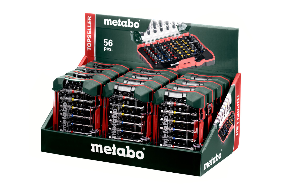 - Bits made from chrome vanadium steel (S2 quality); bits with colour coding: for quick and easy finding of the right bit; magnetic quick-change adapter; high-quality, robust box in special Metabo design with extendable Euro hole punch