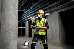 - Compact cordless site light with 10,000 lumens for extensive and even working light with reduced shadowing