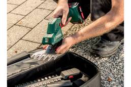 - Slim, rubberised grip area for comfortable and safe guiding of the shrub and grass shears
