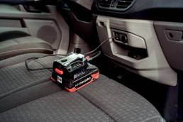 - The perfect companion on the go: charger in a pocket format for 18V battery packs with integrated LED light and power bank function