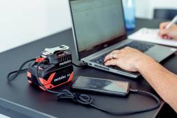 - High-quality accessories suitable for the construction site included in the scope of delivery: mains adapter and USB-C cable