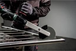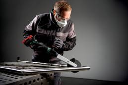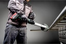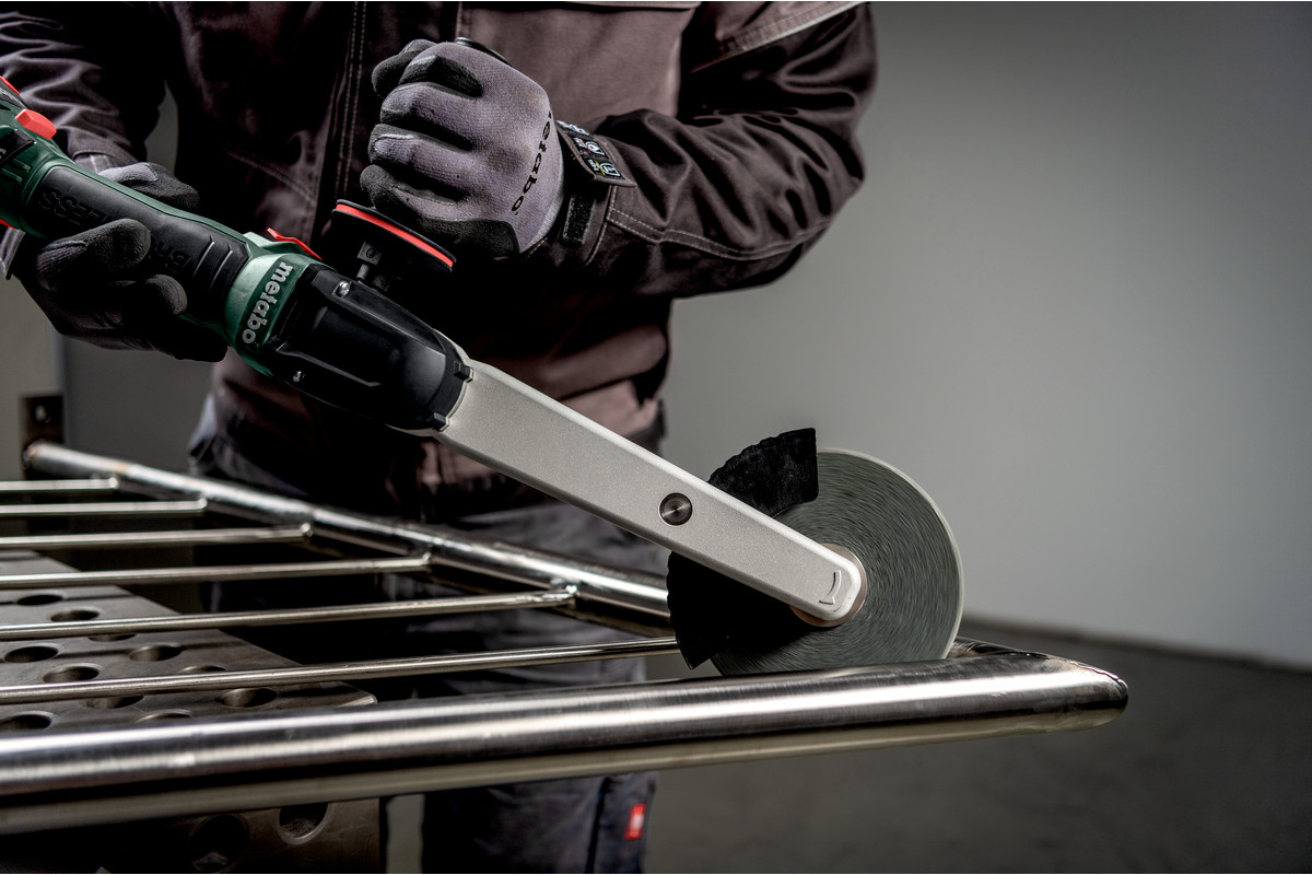 - Very flat cordless fillet weld grinder with brushless motor for processing weld seams in tight spaces