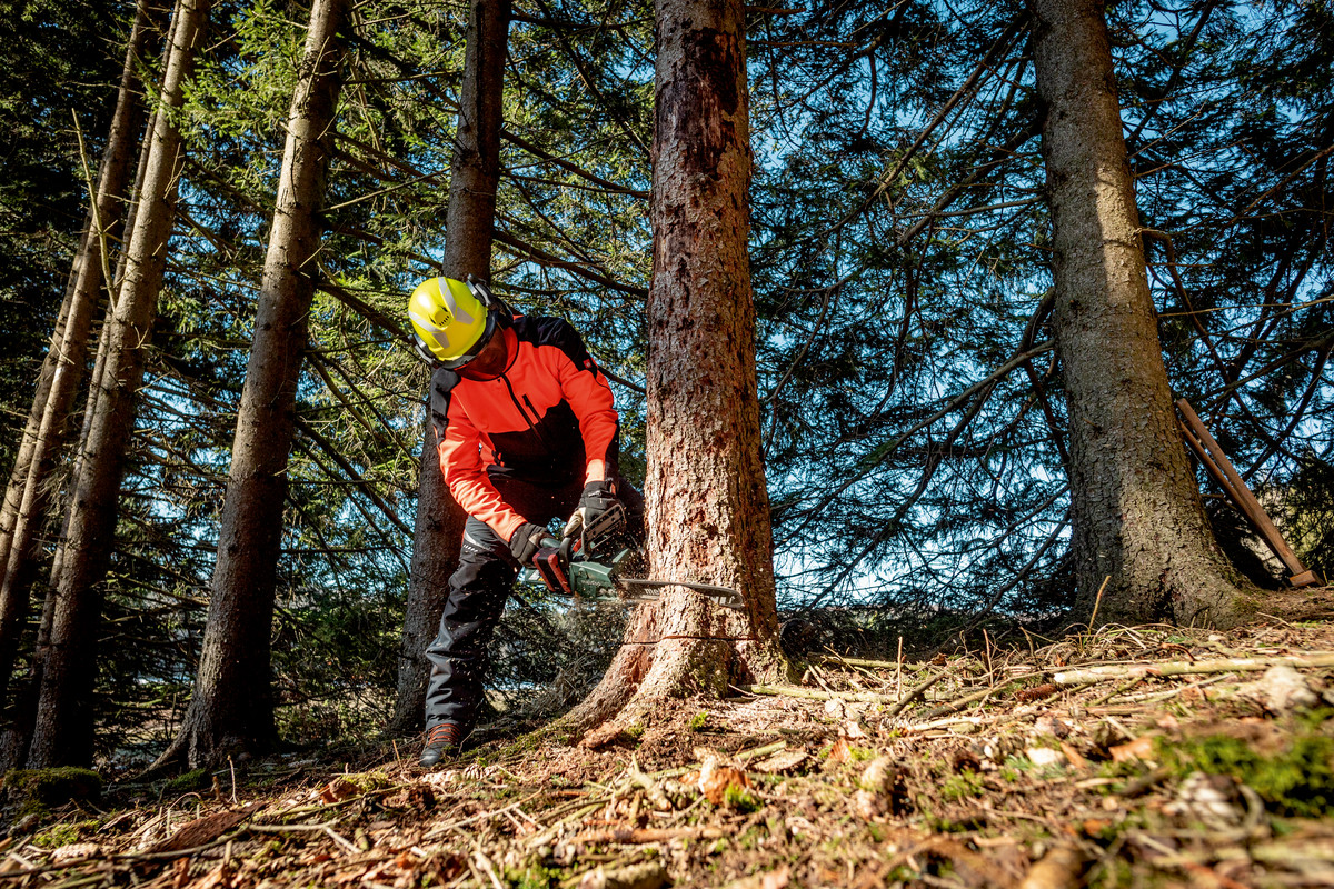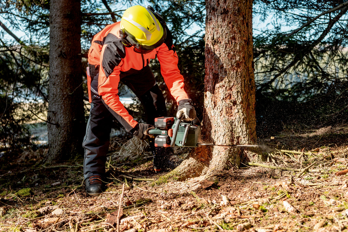 - Powerful cordless motor saw for fast, uniform cuts when felling, delimbing trees, cutting and building with wood