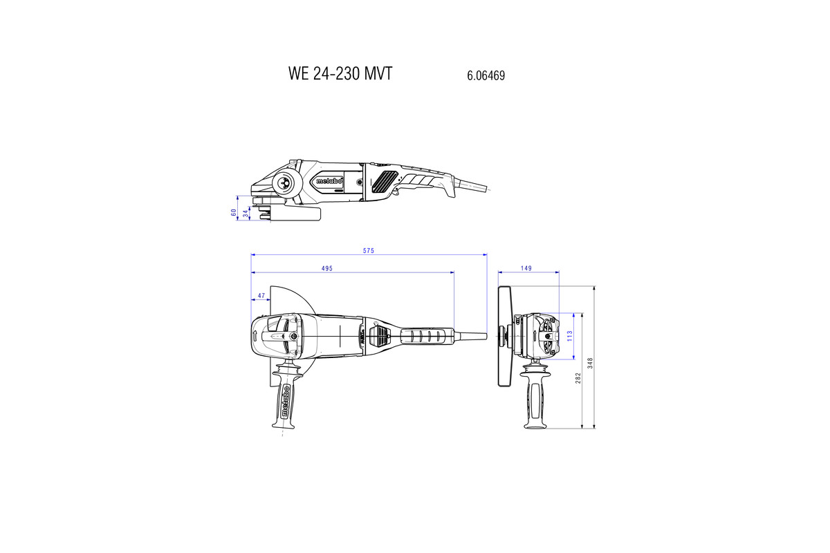 - Metabo VibraTech (MVT): integrated damping system and side handle to reduce vibrations in order to protect the user’s health