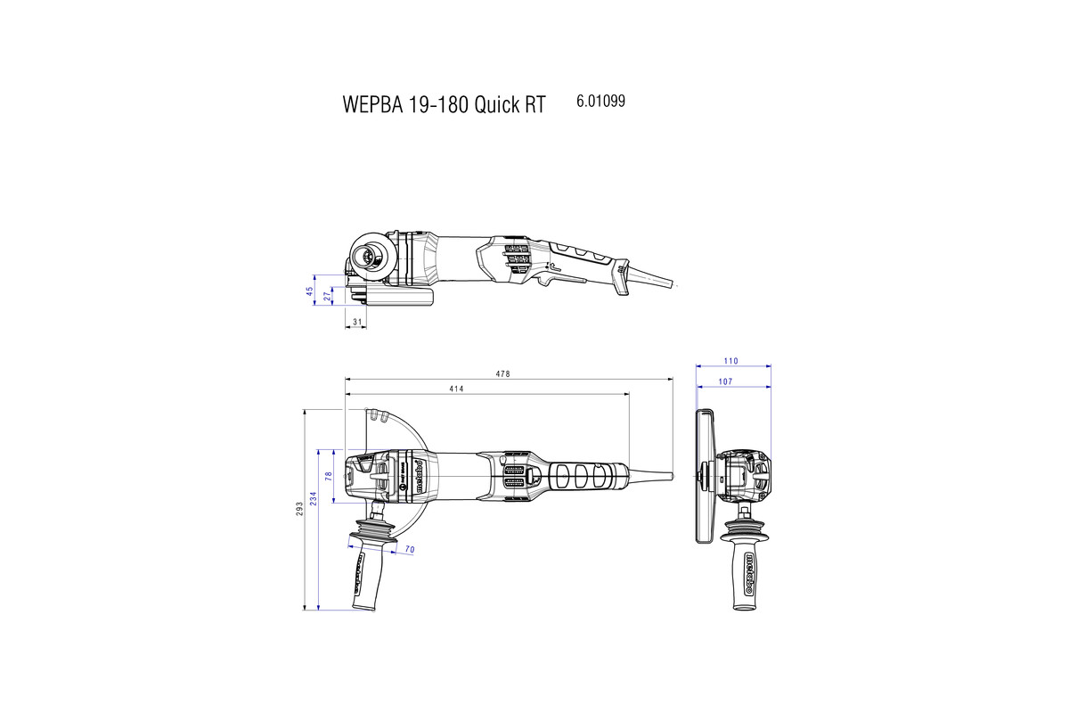 - Reduced vibrations for low-fatigue working thanks to Metabo VibraTech (MVT) side handle and integrated Auto-balancer