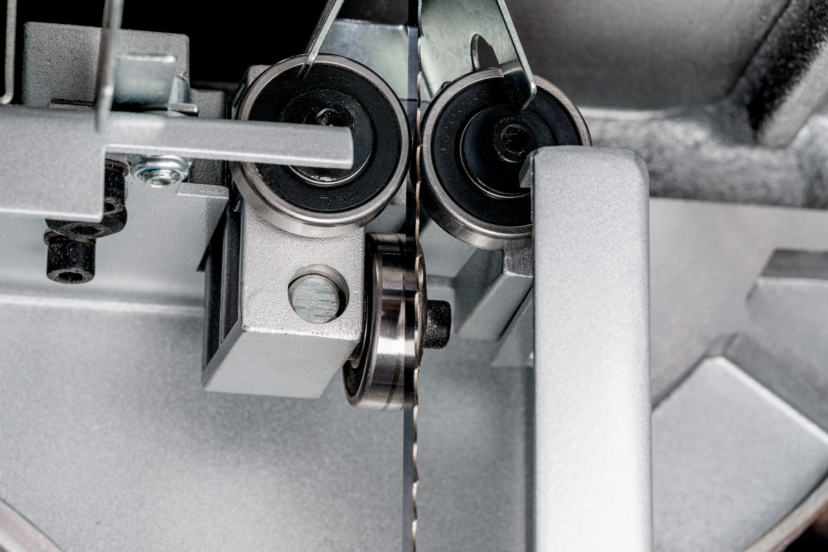 • Top and bottom HSS precision three-roller guide of the band saw blade for accurate cutting results, adjustable without tools